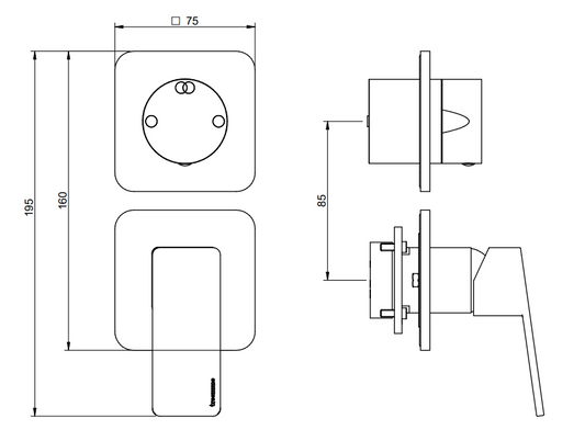 Treemme Arche monocomando remoto per lavabo doccia senza parte incasso cromo