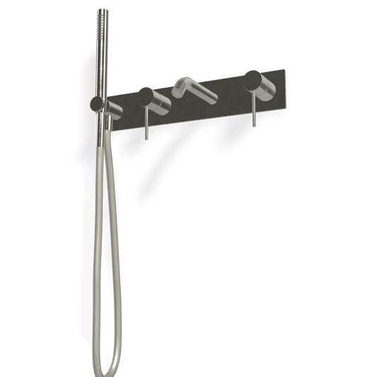 Treemme 40mm miscelatore vasca monocomando a muro con doccetta e bocca senza parte incasso inox satinato