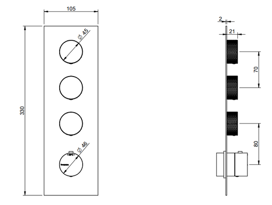 Treemme 5mm miscelatore doccia monocomando con deviatore 2 uscite 2 piastrine senza parte incasso inox satinato