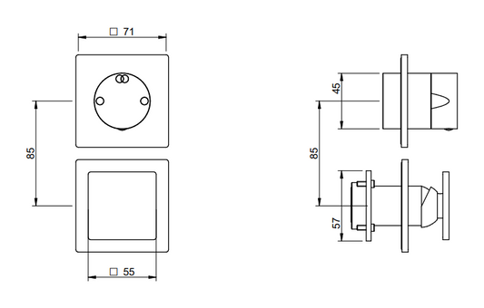 Treemme 5mm miscelatore doccia monocomando con maniglia quadra deviatore 2 uscite 2 piastrine senza parte incasso inox satinato
