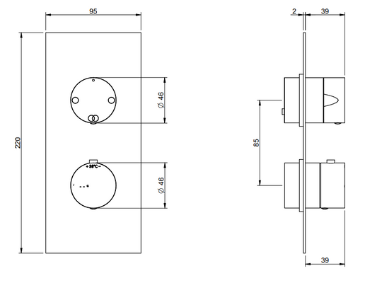 Treemme 22mm miscelatore doccia termostatico senza parte incasso con deviatore 2 uscite inox satinato