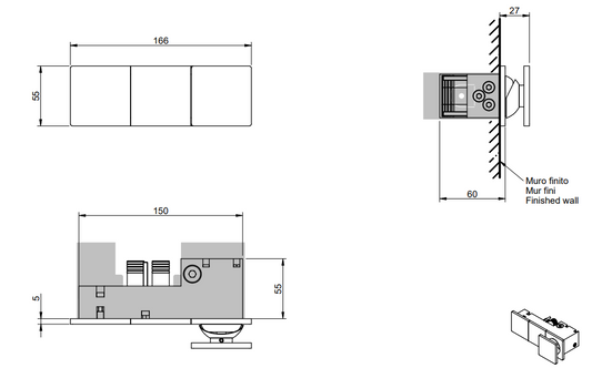 Treemme 3.6 rwit2575is01 miscelatore doccia termostatico a muro 3 uscite senza parte incasso inox satinato