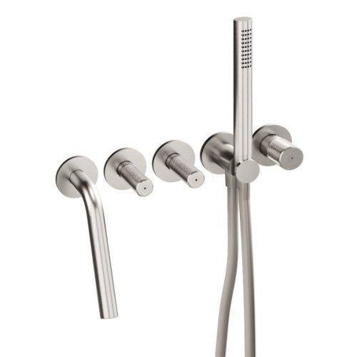 Treemme 5mm miscelatore vasca a muro quadro monocomando con doccetta e flessibile senza parte incasso inox satinato