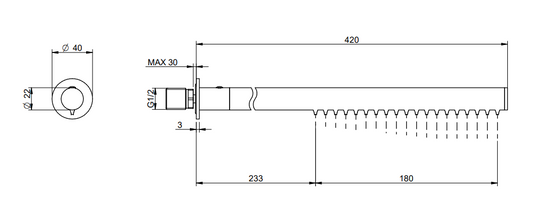 Treemme 22mm RWIT1147IS03 soffione stick a parete 48 cm in acciaio inox satinato