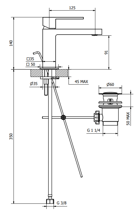 Miscelatore monocomando alto lavabo con scarico click clack cromo JABIL 25