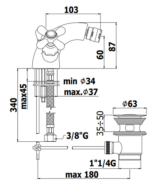 Paffoni Belinda Fblv116 Gruppo Bidet 3 Fori Con Scarico Automatico Cromo