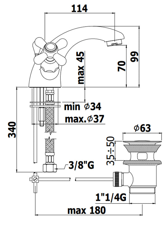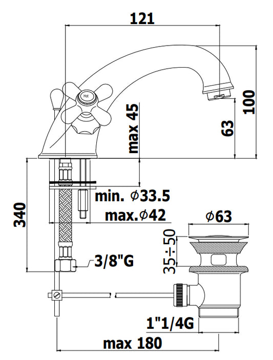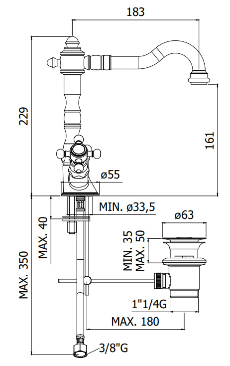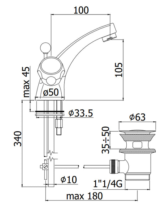 Paffoni Iris IRV065 gruppo lavabo monoforo classico con scarico automatico cromo