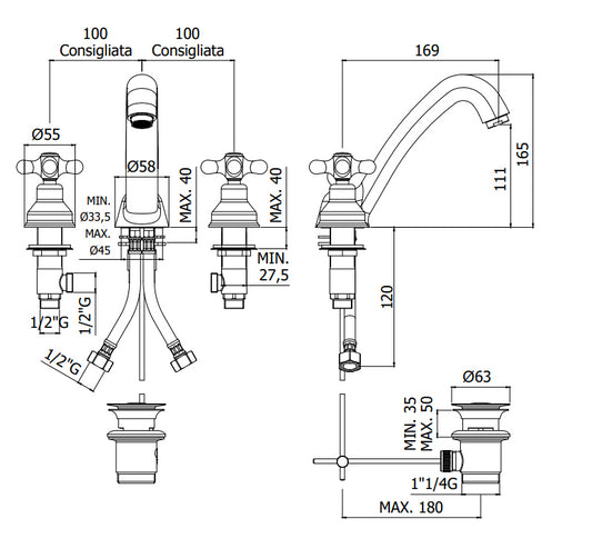 Paffoni Iris Irv055 Gruppo Lavabo 3 Fori Con Scarico Automatico Cromo