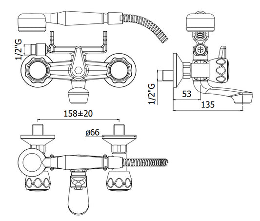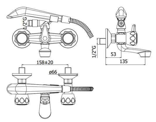 Paffoni Iris Irv027 Gruppo vasca classico esterno con doccetta supporto snodato e flessibile 150 cm cromo