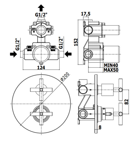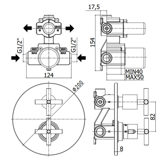 Paffoni Quattro Qtv013 Miscelatore doccia a muro ad incasso Termostatico senza deviatore con Piastra Cromo