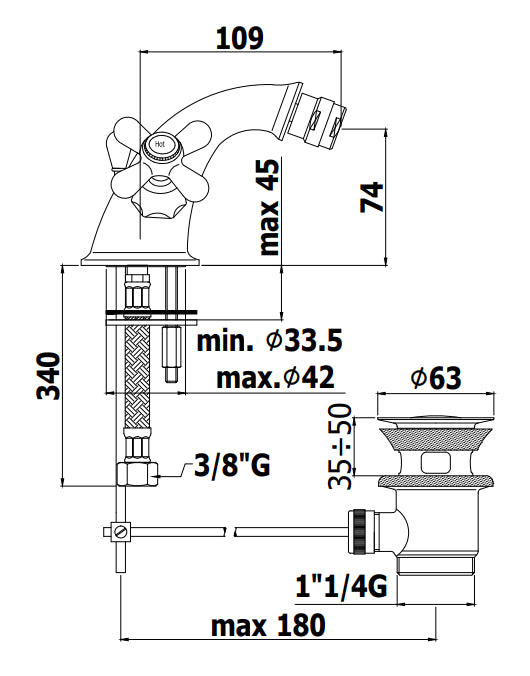 Paffoni Danubio Gruppo Bidet 3 Fori Scarico Automatico Cromo
