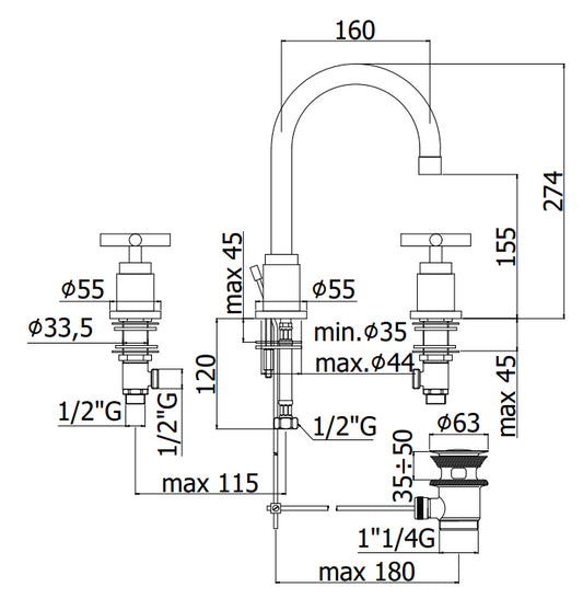 Paffoni Quattro QTV055 Gruppo lavabo 3 fori con scarico automatico cromo
