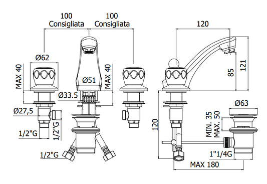 Paffoni Iris Irv057 Gruppo Lavabo 3 Fori Con Scarico Automatico Cromo