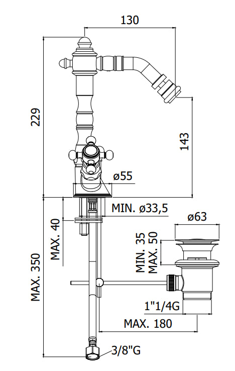 Paffoni Iris Irv135 Gruppo Bidet Scarico Automatico senza Attacco Catenella Cromo