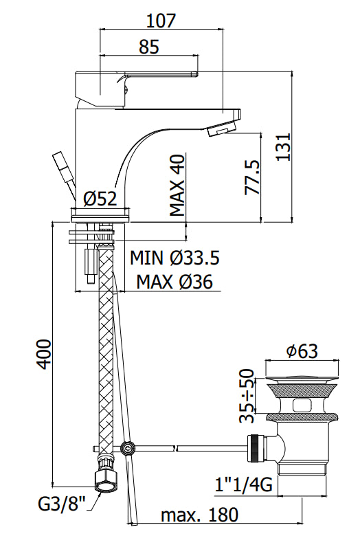 Paffoni Duemila Du070 Miscelatore lavabo scarico automatico Cromo