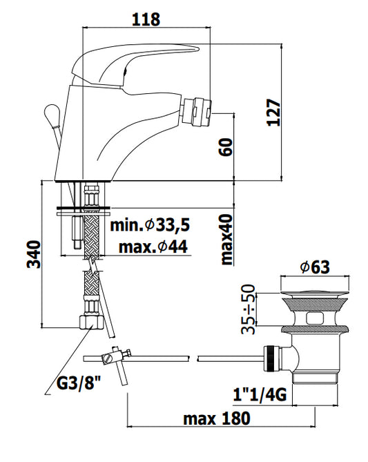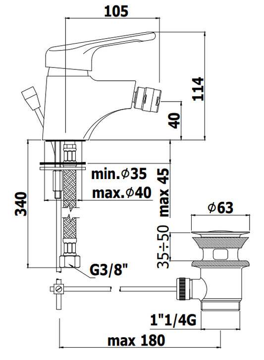 Paffoni Nettuno Nt130 Miscelatore bidet scarico automatico senza attacco catenella Cromo