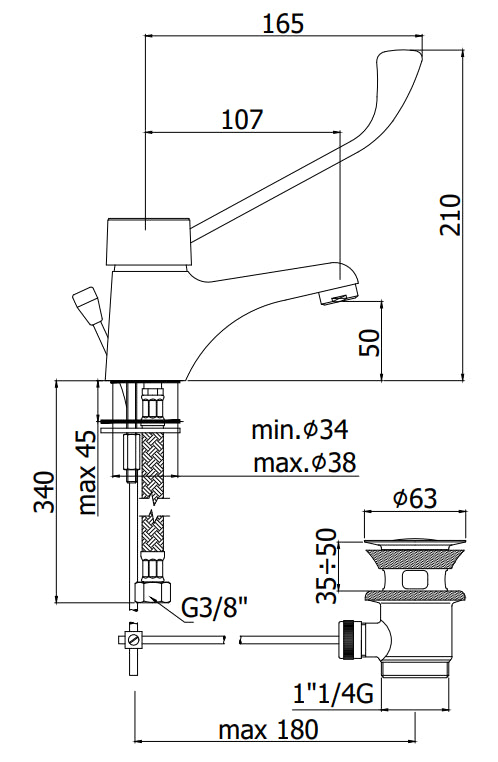 Paffoni Nettuno Nt070 Miscelatore lavabo scarico automatico senza attacco catenella Cromo