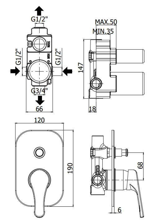 Paffoni Duemila Du010 Miscelatore Monocomando doccia ad Incasso senza Deviatore Cromo