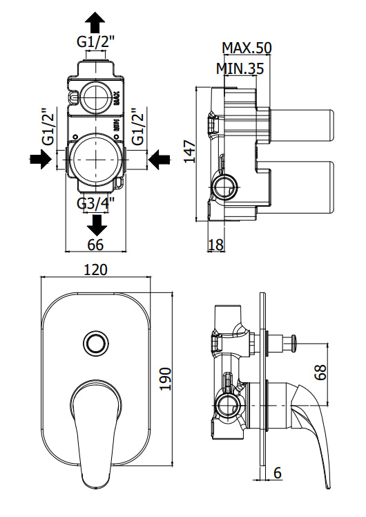 Paffoni Nettuno Ntbox015 Parte Esterna Miscelatore doccia ad Incasso con Deviatore Cromo