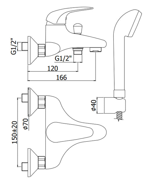 Paffoni Nettuno Nt026 Miscelatore vasca Esterno con doccetta E Supporto A Muro Fisso Cromo