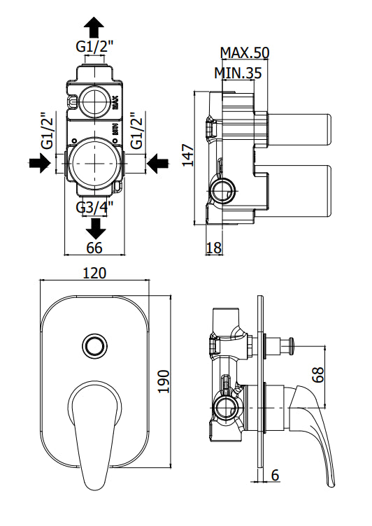 Paffoni Duemila Dubox010 Parte Esterna Miscelatore doccia Incasso Cromo