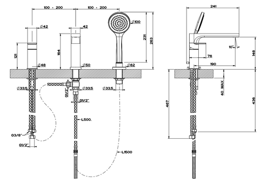 Gruppo bordo vasca 3 fori con bocca di erogazione deviatore bocca e doccetta monogetto cromo via manzoni 38634 Gessi