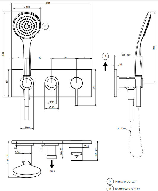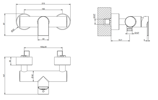 Parte esterna miscelatore doccia a parete 2 vie senza parte incasso cromo cono 45079 gessi