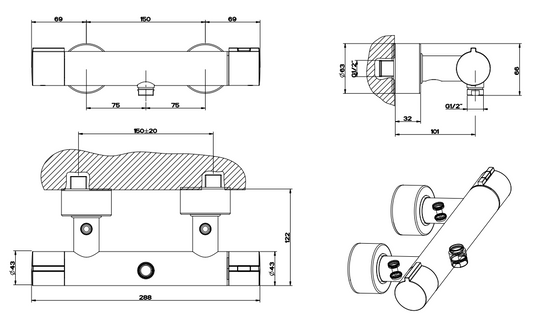 Miscelatore termostatico esterno doccia cromo via tortona 18731 Gessi