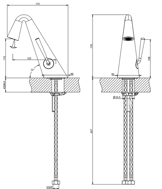 Gessi Goccia Miscelatore lavabo medio bocca lunga senza scarico cromo 33808
