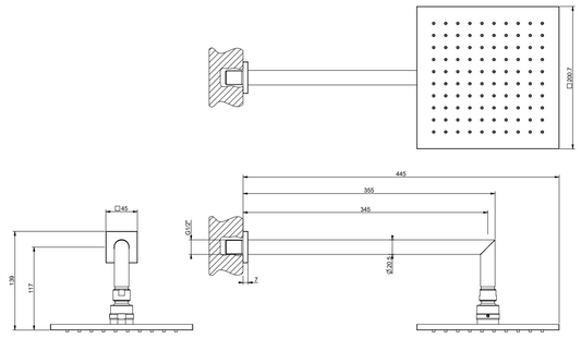 Gessi Emporio 47286 Soffione 20x20 anticalcare a parete orientabile cromo