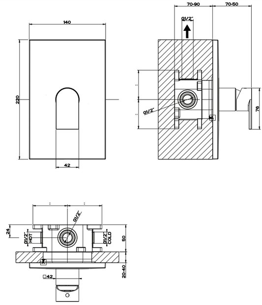 Parte esterna miscelatore termostatico doccia a parete 1 via cromo Goccia 33842 Gessi