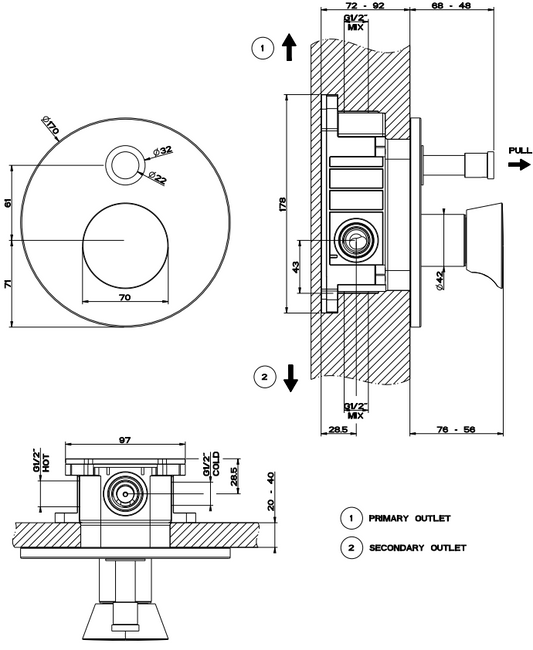 Parte esterna miscelatore tondo a parete 1 via cromo via manzoni 38654 Gessi