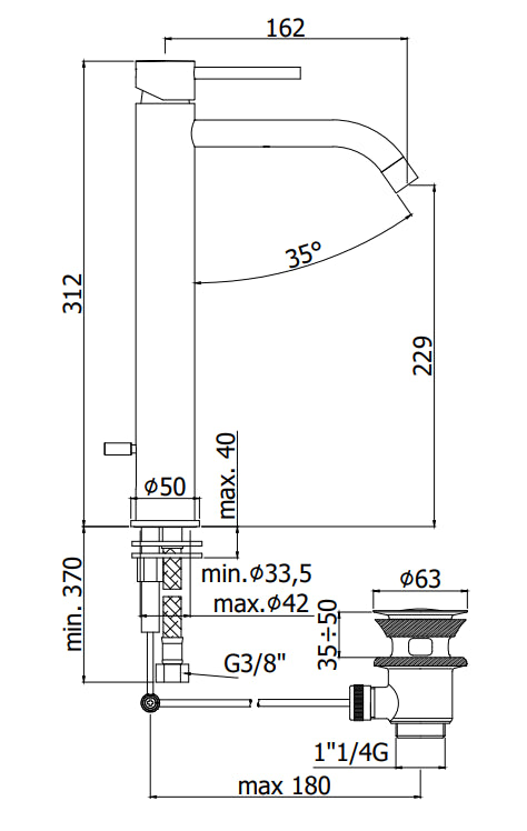 Trasparenze 34201 Gessi Miscelatore Monocomando Lavabo con piletta Cromo