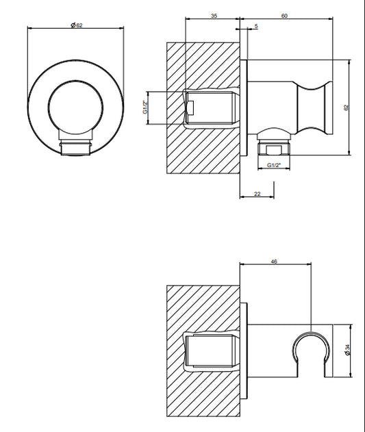 Presa Acqua doccia con supporto doccetta Cromo Minimali Shower 14330 Gessi
