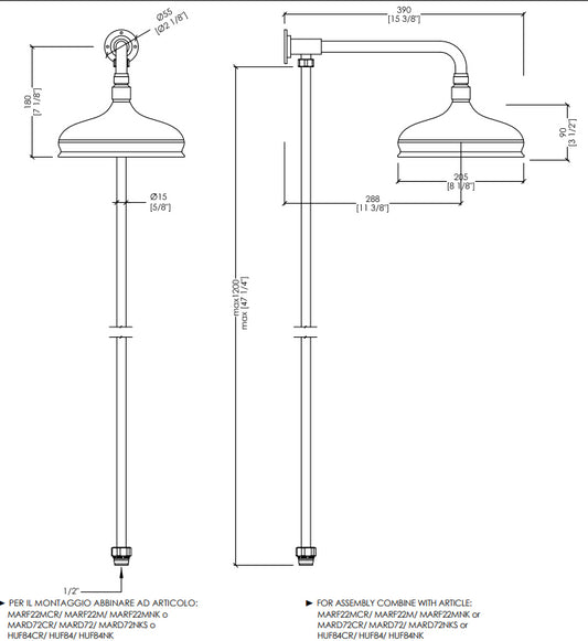 Kit soffione 205 mm e braccio doccia tondo Con Tubo Esterno 15 mm Cromo Coventry AQK320CR Devon&Devon