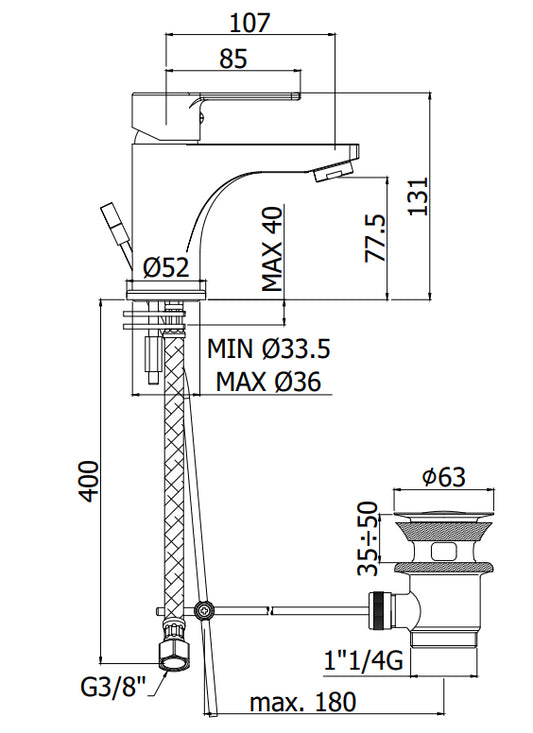 Paffoni Elle EL075CR Miscelatore Monocomando Lavabo con scarico automatico Cromo