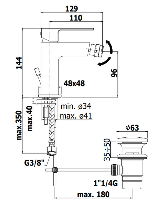 Paffoni Elle EL135CR Miscelatore Monocomando Bidet con scarico automatico Cromo