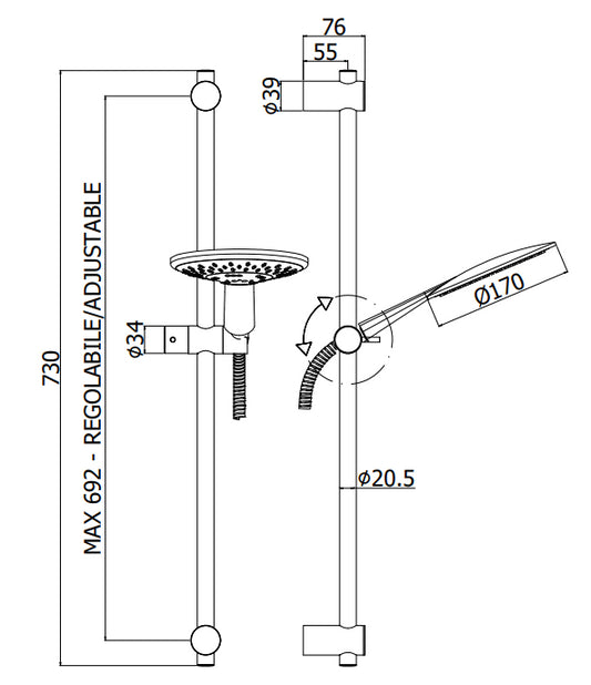 Paffoni Odeon asta doccia 73 cm con doccetta saliscendi supporto scorrevole Cromato