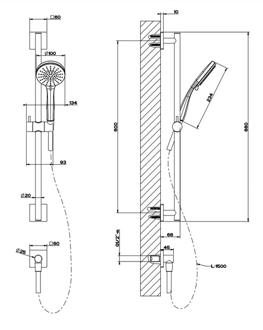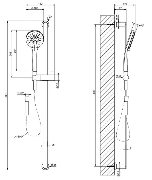 Asta Saliscendi Con Doccetta Anticalcare Tre Getti E Flessibile 150 Cm Cromo Gessi Emporio Shower 47243
