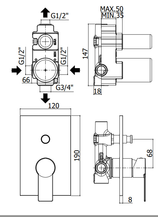 Via Manzoni Emporio Gessi Parte Incasso Miscelatore Termostatico Doccia A Parete Cromo 38269