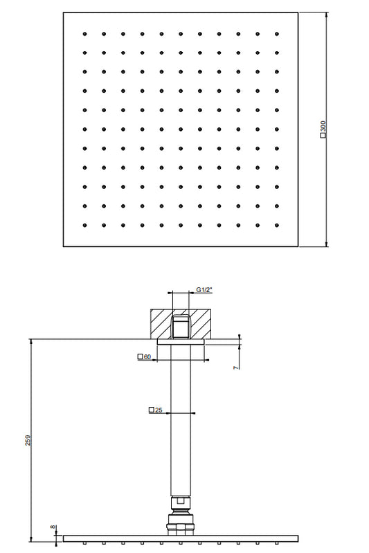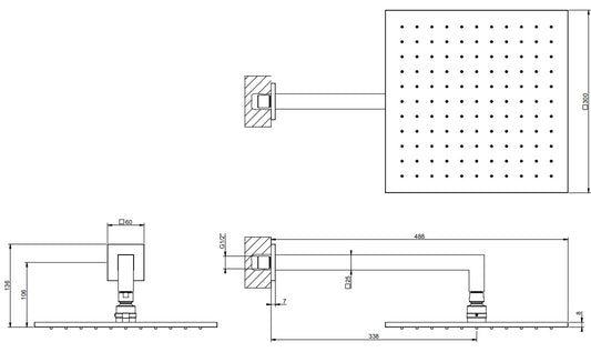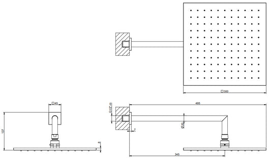 Gessi Emporio 47368 Soffione 30x30 a Parete con braccio Cromo