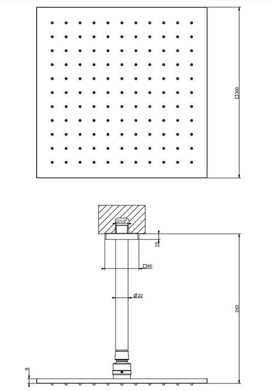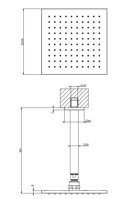 Gessi Emporio 47374 Soffione 20x20 con braccio a Soffitto Cromo