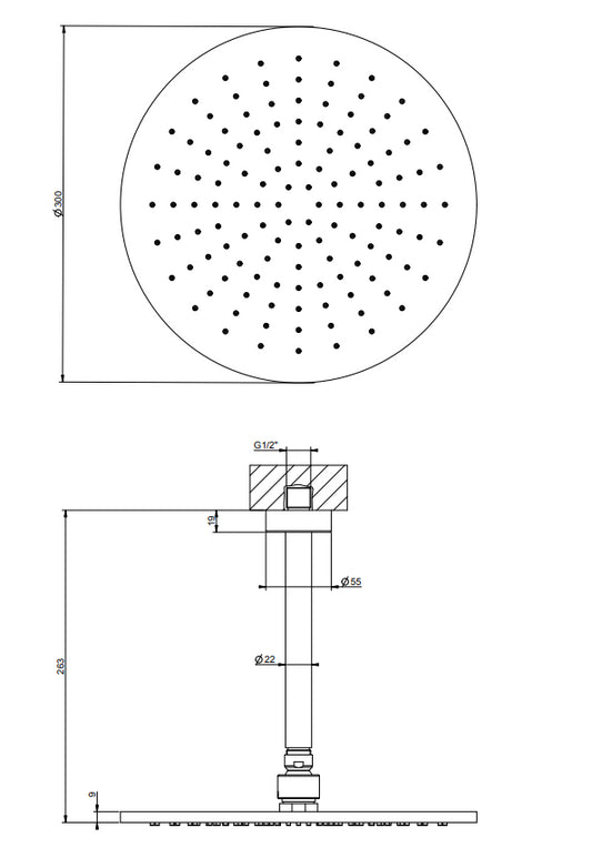 Gessi Emporio 47370 Soffione Doccia 30 cm tondo con braccio a Soffitto Cromo