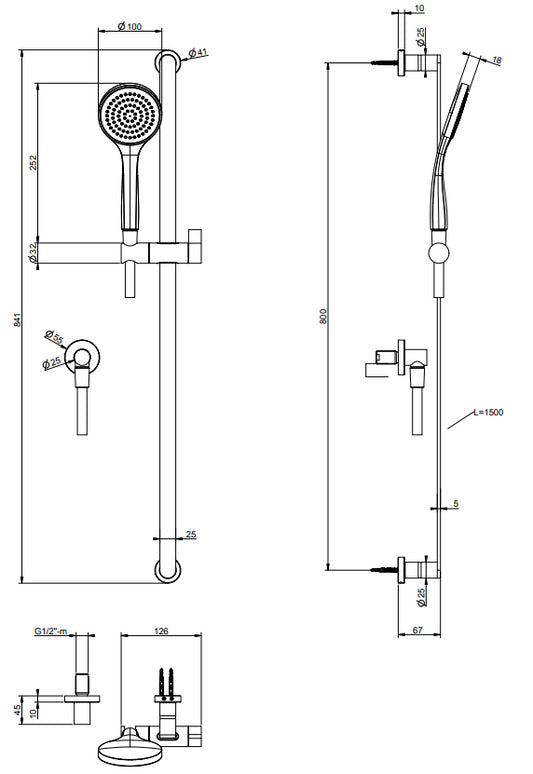 Asta saliscendi con doccetta anticalcare tre getti e flessibile 150 cm cromo gessi emporio 47318