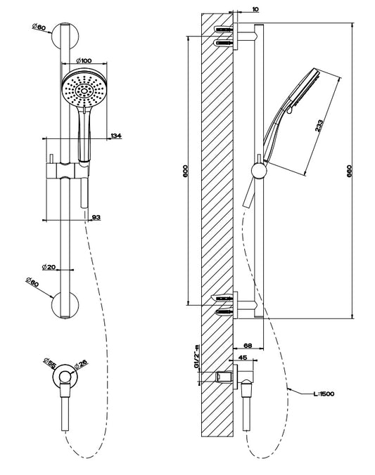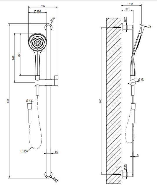 Asta Saliscendi Con Doccetta Anticalcare Monogetto E Flessibile 150 Cm Cromo Gessi Emporio 47314