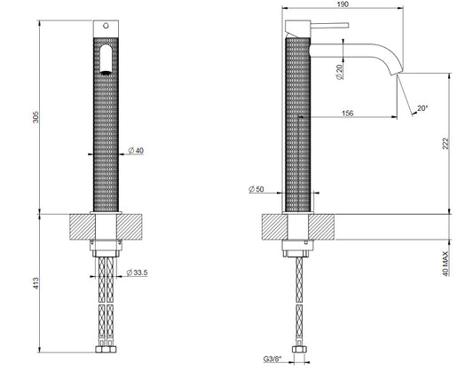 Miscelatore Lavabo Alto Bocca Lunga Senza Scarico Con Flessibili 726 Warm Bronze Brushed Meccanica 54206 Gessi