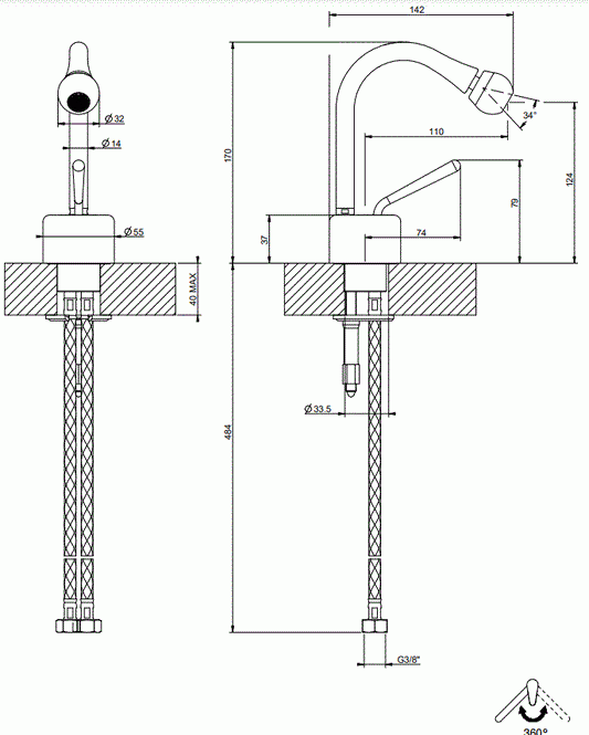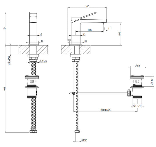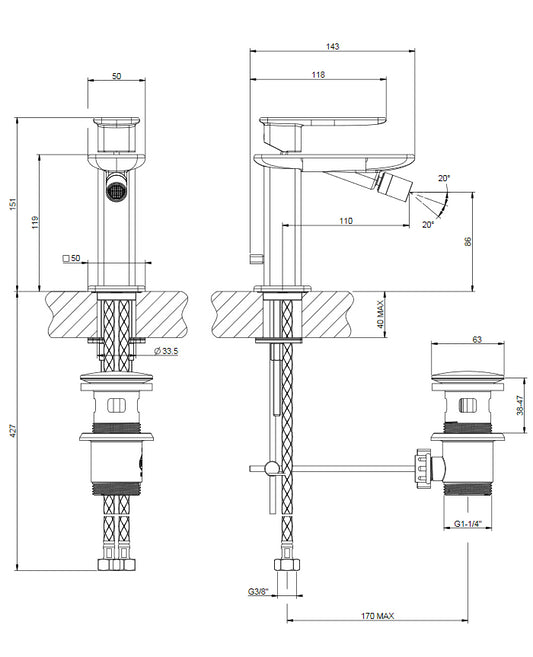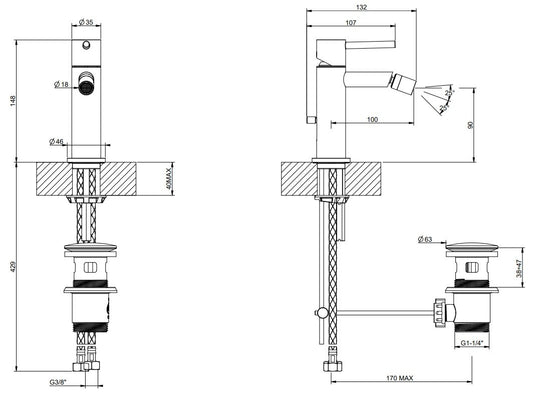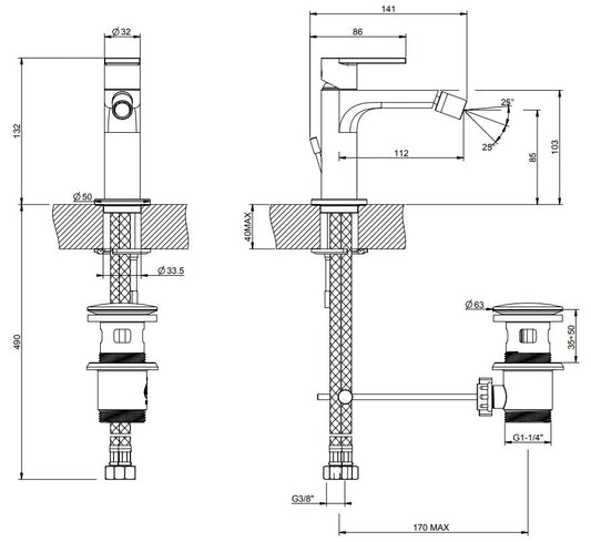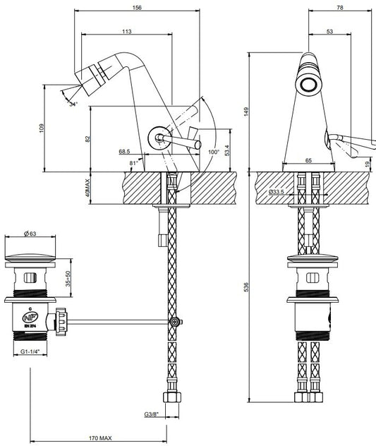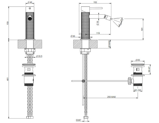 Gessi Ispa Miscelatore bidet con scarico e flessibili di collegamento cromo 41407