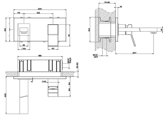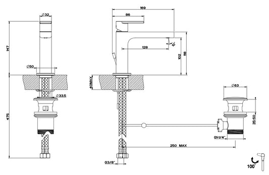 Parte Incasso Miscelatore Lavabo Da Terra Con Bocca