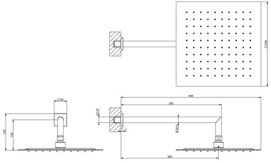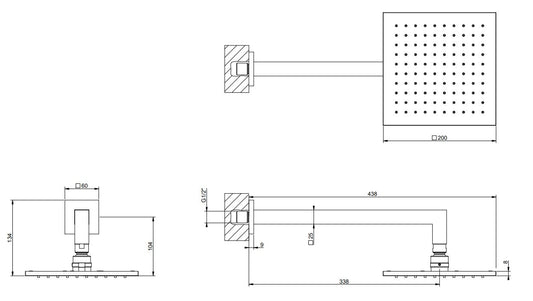 Soffione doccia 20x20 quadro Anticalcare Orientabile con braccio a parete Cromo Shower 47376 Emporio Gessi