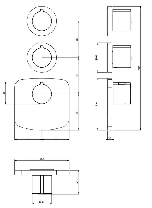 Parte esterna miscelatore termostatico doccia a parete 3 vie senza parte incasso cromo 38796 Emporio Gessi